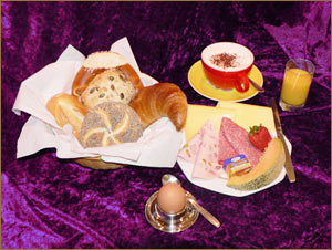 Unser großes Frühstücksprogramm lässt keine Wünsche offen. Neben dem klassischen Frühstück mit Brötchen, Brezel, Croissant, Konfitüre, Honig, Käse und Ei, bieten wir auch die Fitnessvariante mit Jogurt, Cornflakes und frischem Obst.